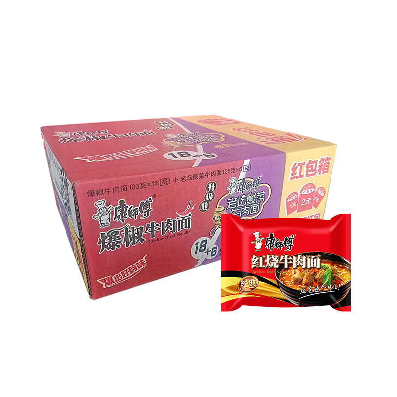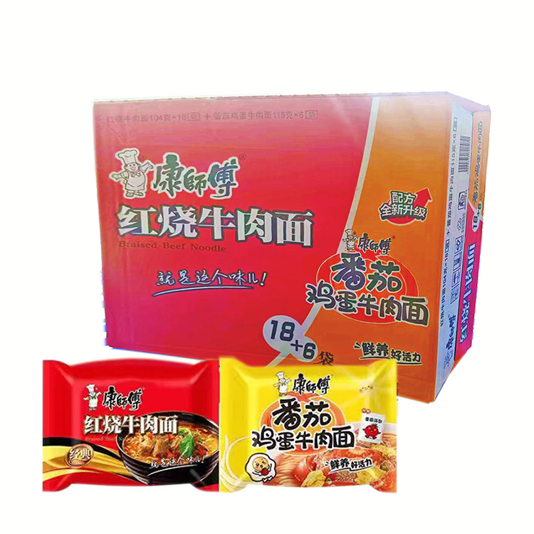 康师傅经典袋面红烧牛肉+番茄鸡蛋牛肉1*24