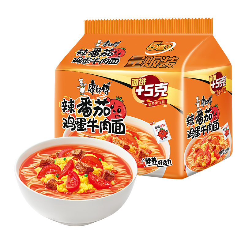 康师傅经典袋五包入辣番茄鸡蛋牛肉面1*6