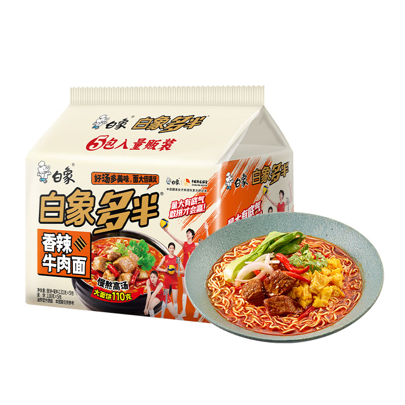 白象多半香辣牛肉面袋面(五连包)(142g*5*6)