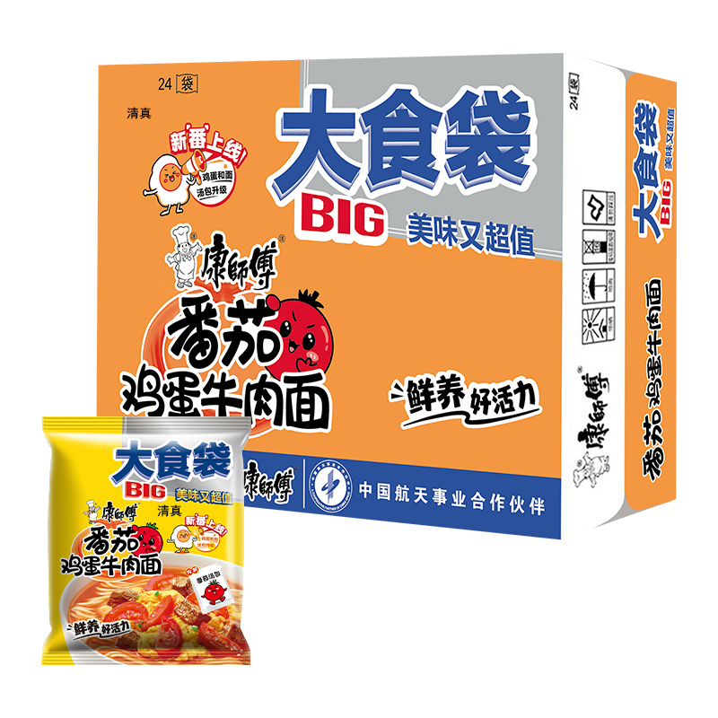 康师傅大食袋番茄鸡蛋牛肉面1*24