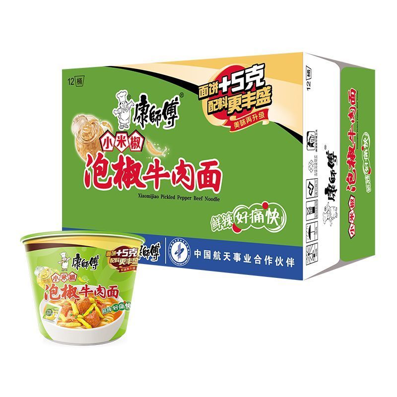 康师傅经典桶小米椒泡椒牛肉面1*12