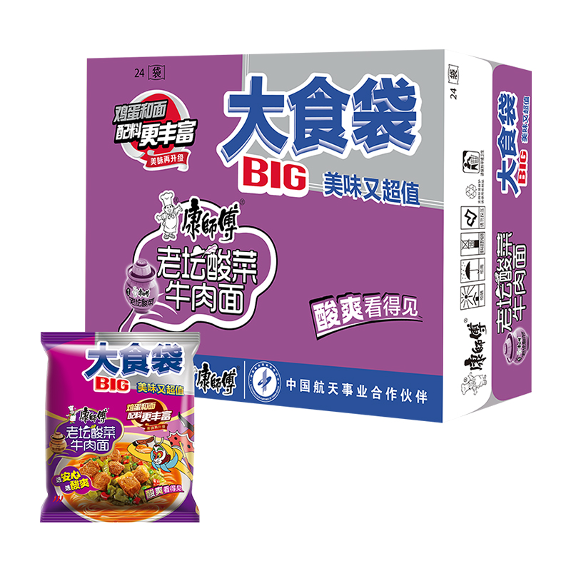 康师傅大食袋老坛酸菜牛肉面1*24