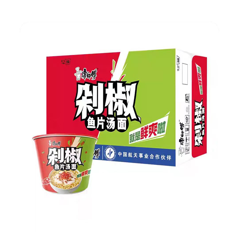 康师傅经典桶剁椒鱼片汤面1*12
