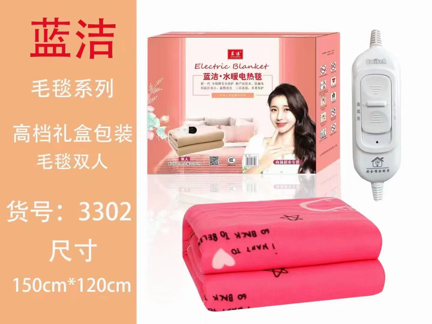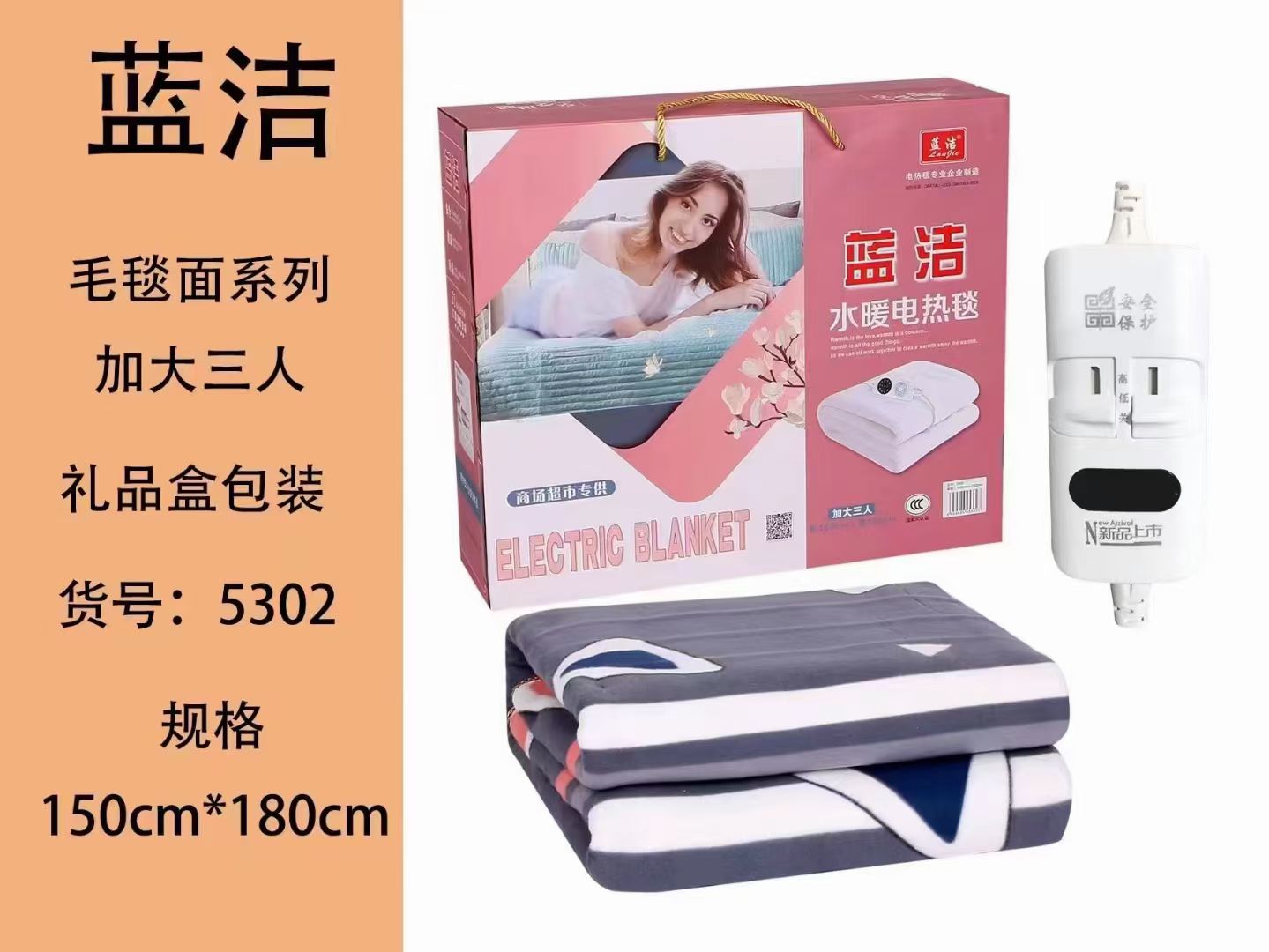 5302蓝洁毛毯礼盒装电热毯150*180