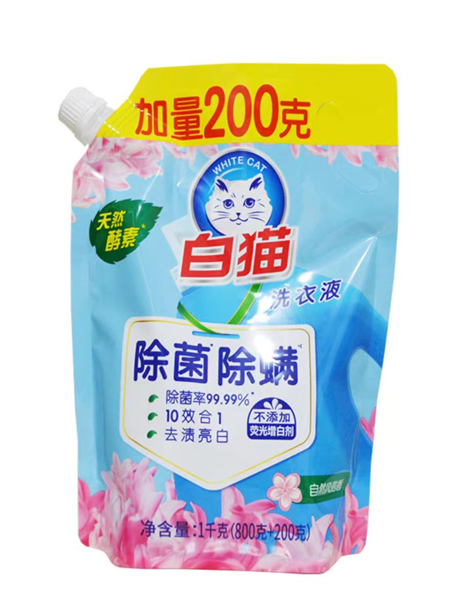 白猫除菌除螨洗衣液(袋装)1*10*1kg