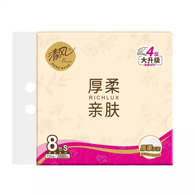 清风厚柔亲肤抽纸90抽8包装1*8提