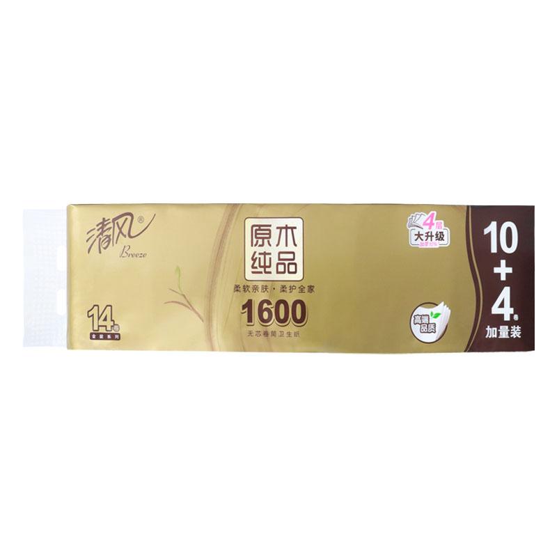 清风1600原木纯品无芯卷纸1*6提