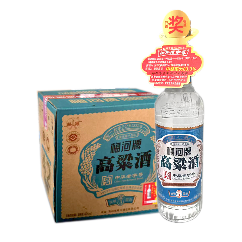 梅河牌中华老字号高粱酒42度(柔3)1*12*500ml[HX]
