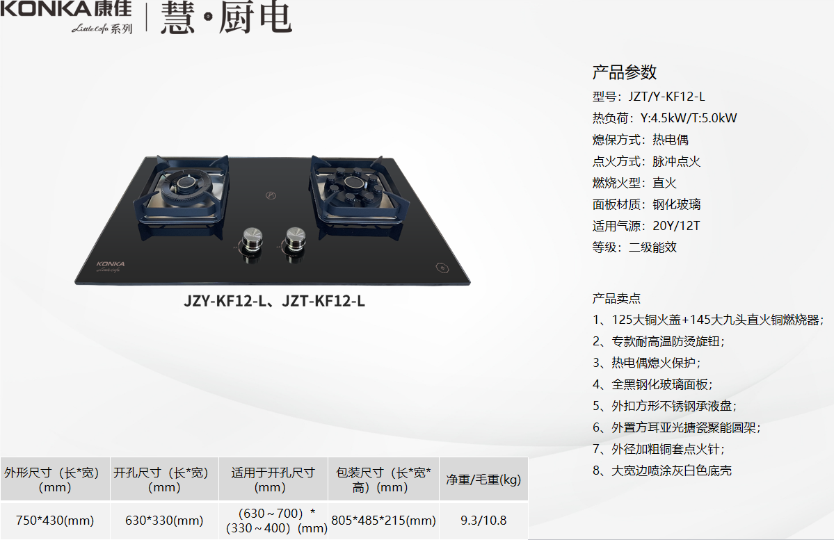 康佳燃气灶二级能效KF-12-L联动款