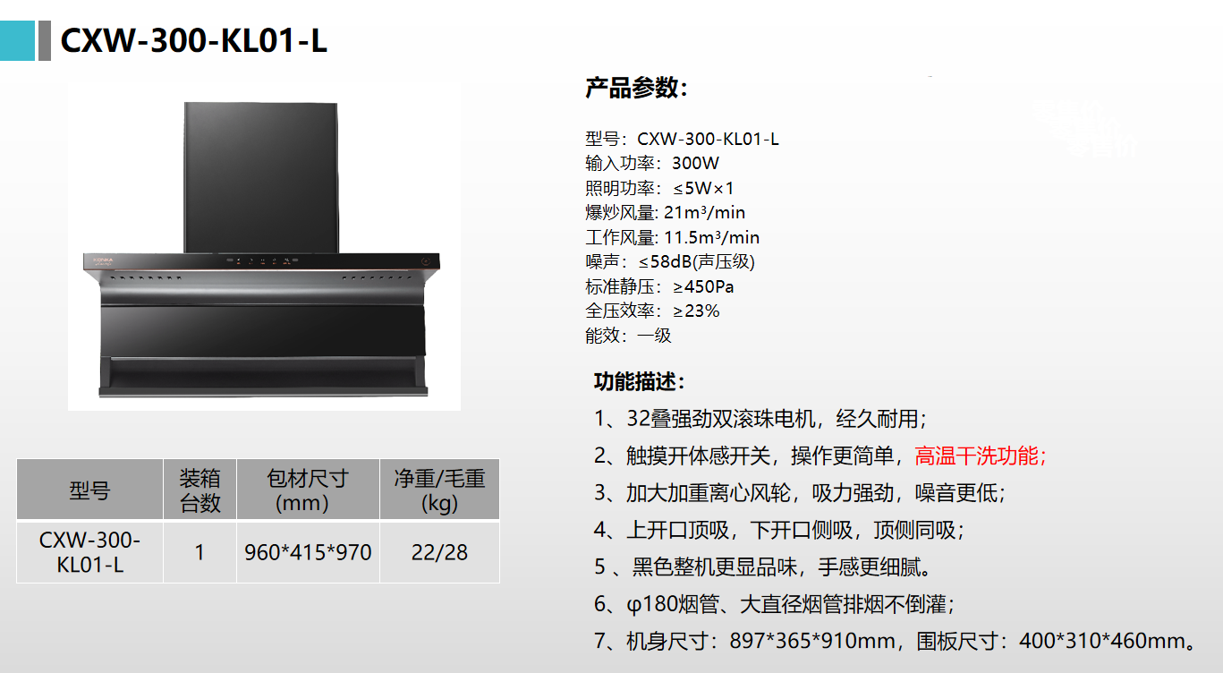 康佳吸油烟机一级能效KL01-L
